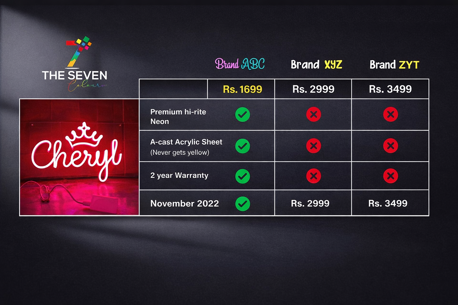 Ordered a custom neon logo for my startup office. Quality, brightness and finishing are excellent.