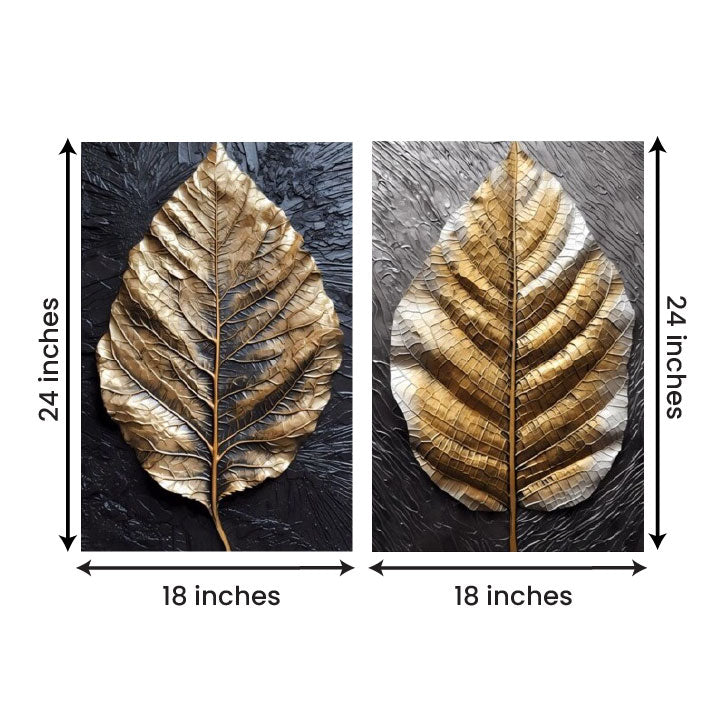 a rich dark background, creating a bold and luxurious visual appeal. The natural leaf form combined with modern styling makes this artwork ideal for living room wall decor, modern home interiors, and contemporary wall decoration, adding depth and elegance to any space.