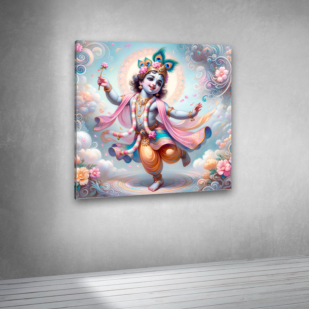 Bal Gopal Dancing Wall Painting – Lord Krishna Child Form Canvas Art for Home Decor