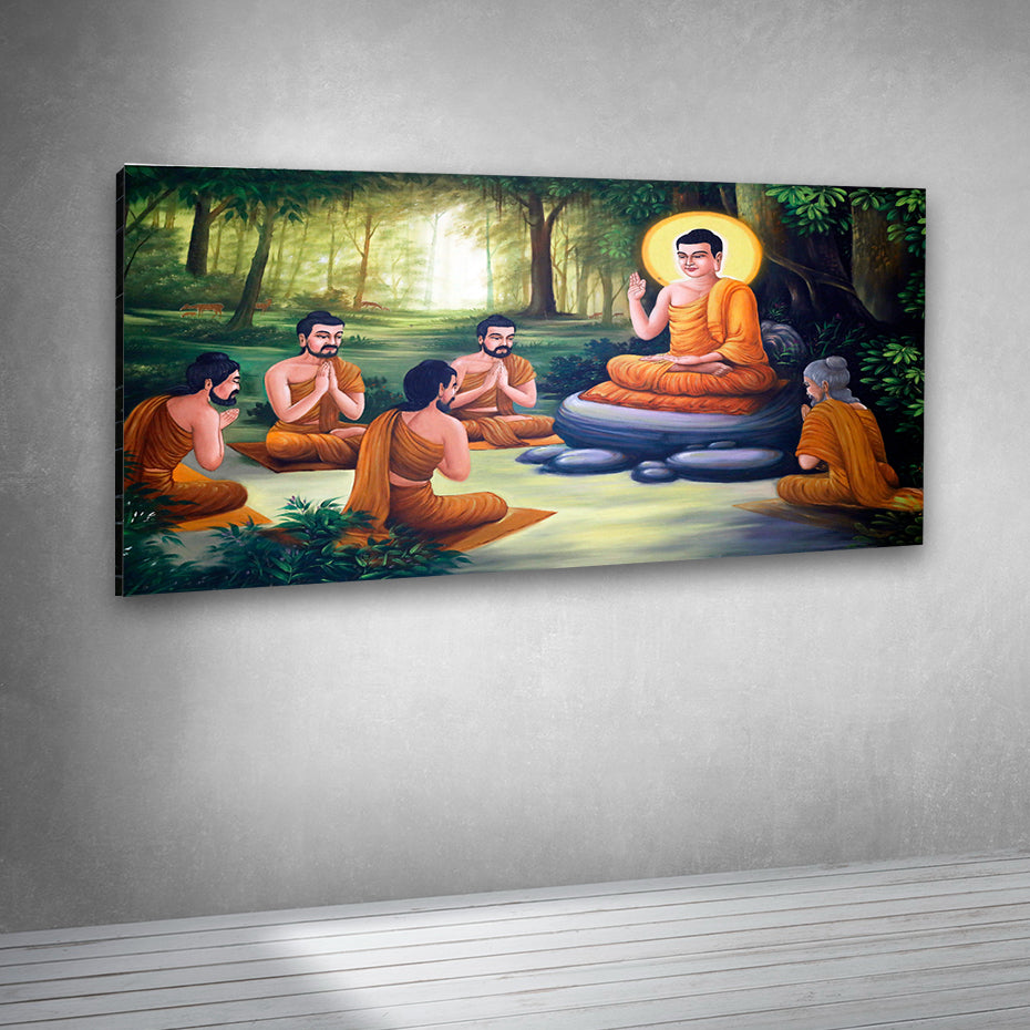 Lord Buddha Teaching Disciples Wall Painting – Spiritual Canvas Wall Art